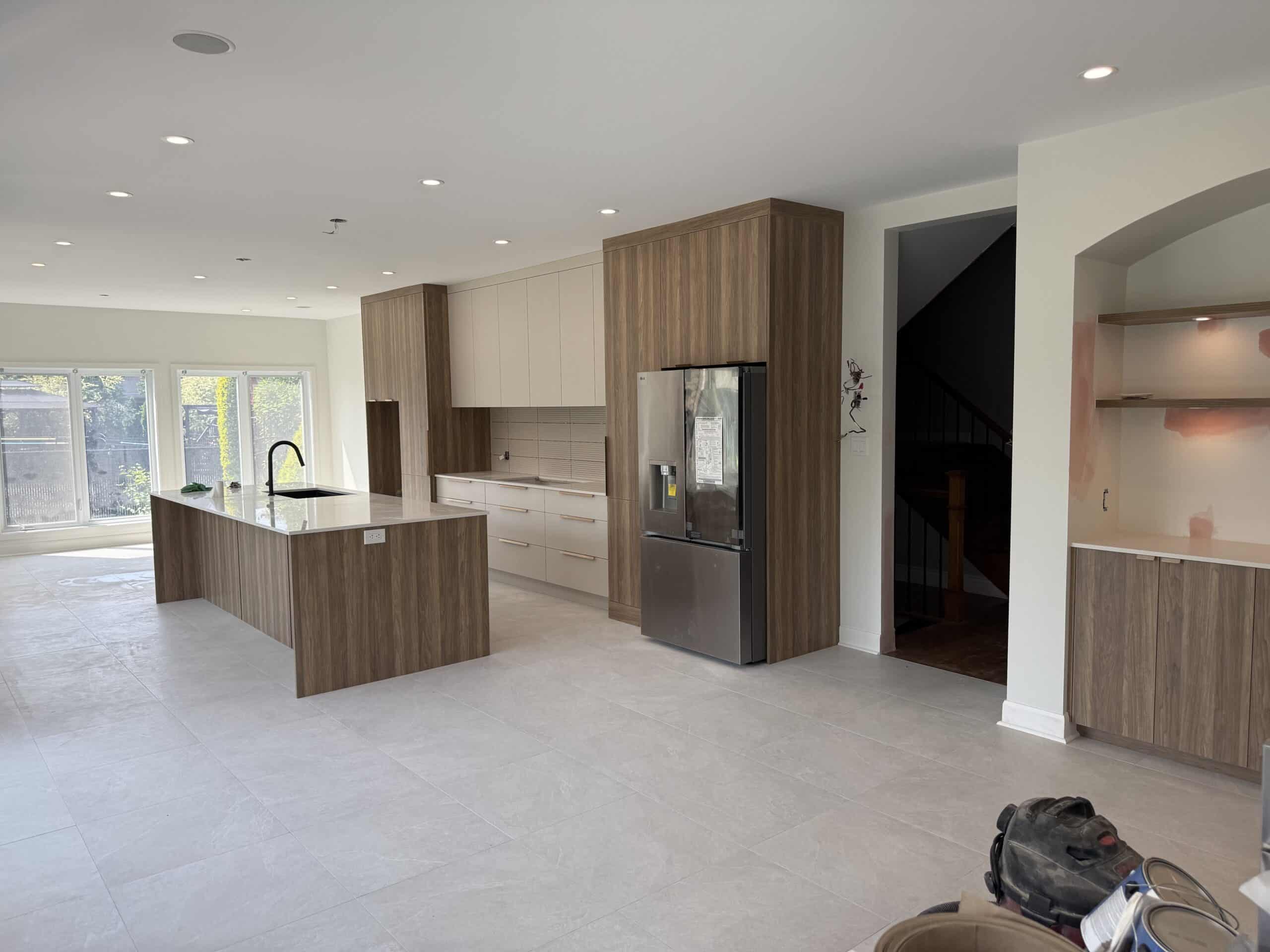 La cuisine est le cœur de la maison et nous croyons qu’elle doit être à la fois pratique, accueillante et esthétique. Nous concevons des espaces culinaires qui allient fonctionnalité et style, en optimisant chaque centimètre. Que vous souhaitiez moderniser vos armoires, installer un îlot central ou changer complètement l’aménagement, notre équipe vous accompagne du design à la pose finale, en respectant vos goûts et votre budget.